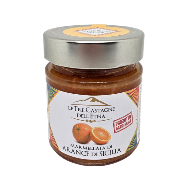 Marmellata di Arance di Sicilia, prodotta con frutta fresca siciliana accuratamente selezionata con un procedimento di cottura che rispetta le proprietà nutritive e le caratteristiche dell’agrume e che consente di sfruttare gli zuccheri naturali della frutta, aggiungendo quindi una ridotta quantità di zucchero.